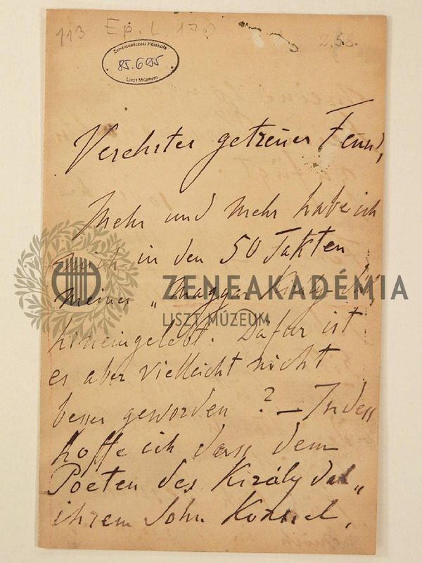 Liszt Ferenc levele Ábrányi Kornélhoz.