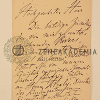 Kéri, hogy honoráriumából ötven aranyat a kismartoni óvoda igazgatójának küldjön.