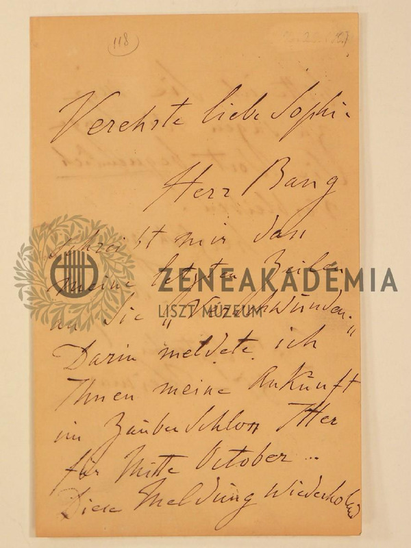 Liszt Ferenc levele Sophie Menterhez.