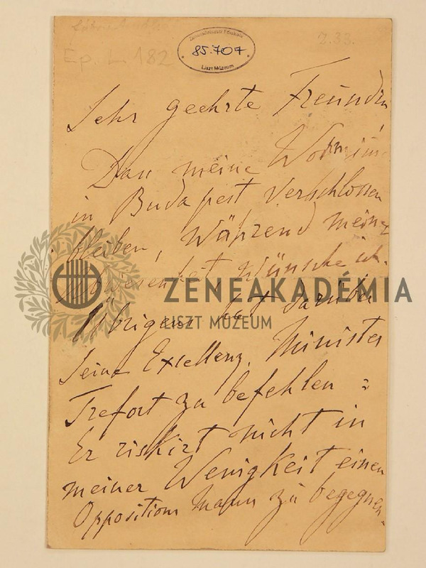 Liszt ragaszkodik ahhoz, hogy távollétében más ne használja lakását. Nyári terveiről ír.