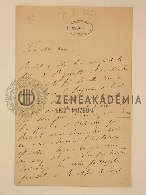 Liszt Ferenc levele Mihalovich Ödönhöz.
