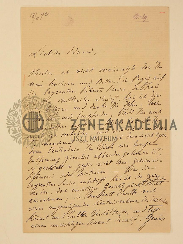 Liszt Ferenc levele Liszt Eduárdhoz.