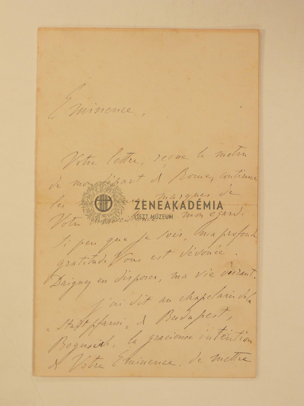Liszt Ferenc levele Gustav Hohenlohe bíboroshoz.