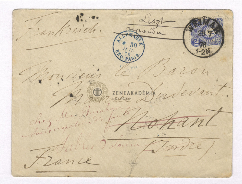 Liszt Ferenc címzett borítéka Maurice Dudevant-hoz