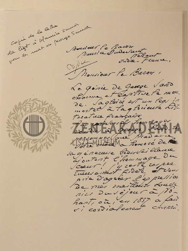Liszt Ferenc levele Maurice Dudevant báróhoz, Aurore Sand kézírásával.