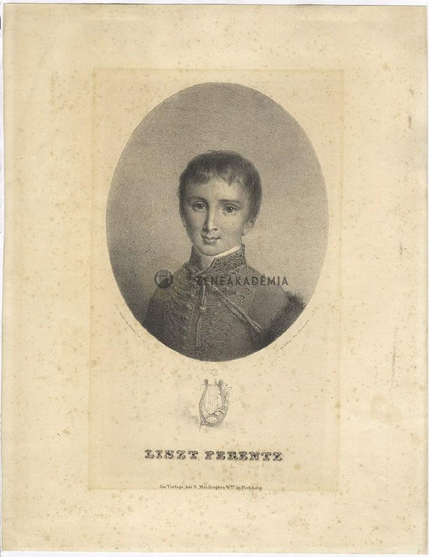 Mellkép a gyermek Lisztről, magyaros öltözékben, ovális keretben. Szembe fordul. Jelezve balra lent: "Ferd. Baron de Lütgendorf [sic!] del." Jobbra: "Ex lithogr. Jos. Trentsensky." A kép alatt lírát ábrázoló rajz. Alatta nyomtatva: "LISZT FERENTZ". Legalul: " Im Verlage bei N. Meidingers Wwe in Pressburg."