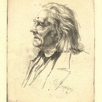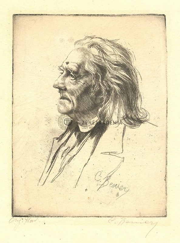 Mellkép az idős Lisztről. Balra fordul, bal profilban van. Jelezve jobbra lent: "C. Bernier" A kép alatt ceruzával: " Orig. Rad." Jobboldalt ismét: "C. Bernier"