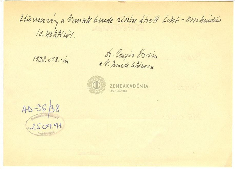 - Dr. Major Ervin elismervénye a Liszt összkiadás 10. kötetének átvételéről a Nemzeti Zenede számára.