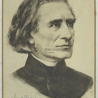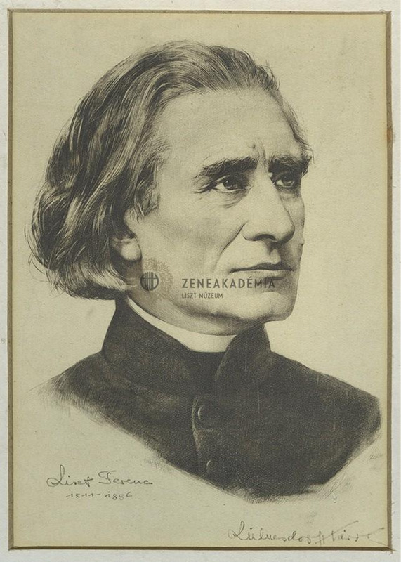 Az abbéruhás, de nem idősarcú Liszt jobb félprofilban. Orra mellett éles vonás. Balra lent: "Liszt Ferenc 1811-1886" Jelezve jobbra lent: "Lühnsdorff Károly"