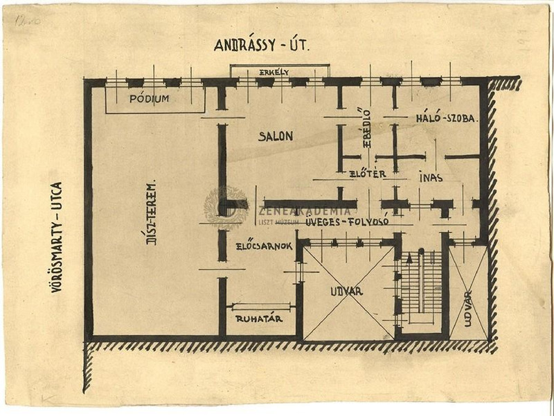 - Liszt Sugár úti (Andrássy úti) lakásának tervrajza (rekonstrukció)