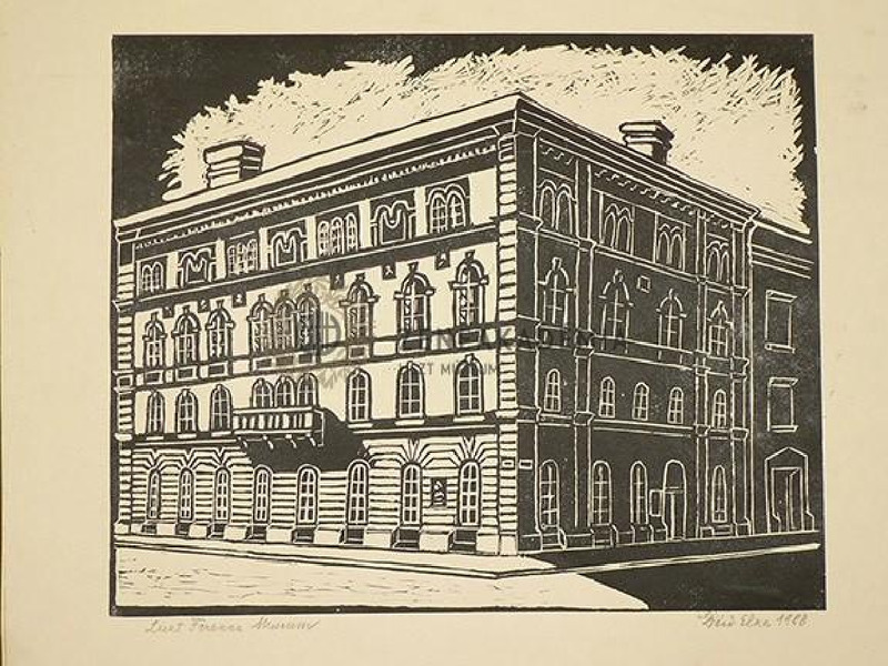 - A Régi Zeneakadémia saroképülete, fekete-fehér ábrázolásban. Itt található a Liszt Ferenc Múzeum.