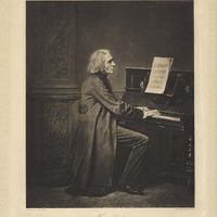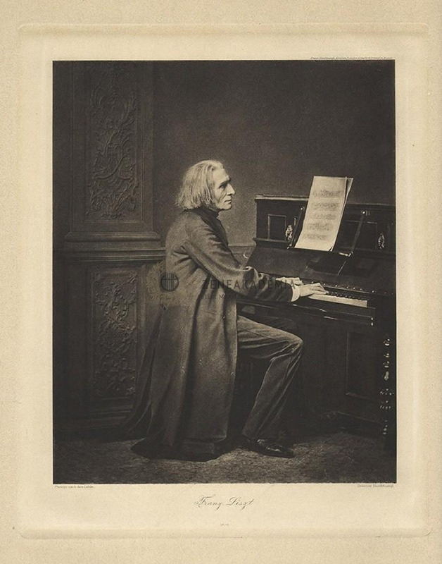 Fénykép alapján készült egész alakos kép. Liszt a pianinónál ül, jobbra fordul. Kezei a billentyűkön, kabátja a földig ér. A kottatartón nyitott kotta áll. Liszt mögött balra oszlop áll. A kép alatt középen: "Franz Liszt", alatta: "No. 178." A kép alatt balra: "Photogr. nach dem Leben" Jobboldalt: "Gravure Hanfstaengl".