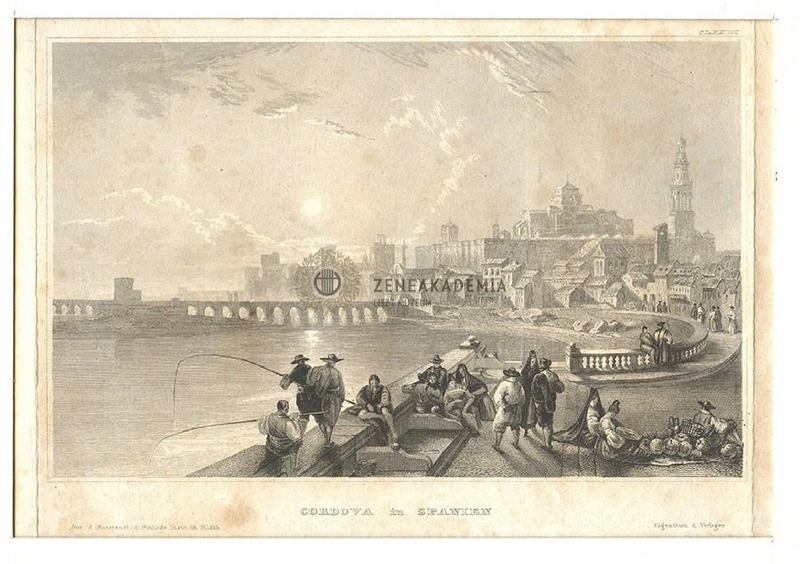 Vízparton fekvő városkép, előtérben horgászok és árusok, járókelők csoportja. Háttérben balra híd, jobbra maga a város. Jobbra fent: "CLXXIII" A kép alatt középen: "CORDOVA IN SPANIEN" Balra alatta: "Aus d- Kunstanst. d. Bibliogr. Instit. in Hildbh." Jobbra lent: "Eigenthum d. Verleger." A Kunstanstalt des Bibliographischen Instituts in Hildburghausen kiadása.