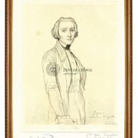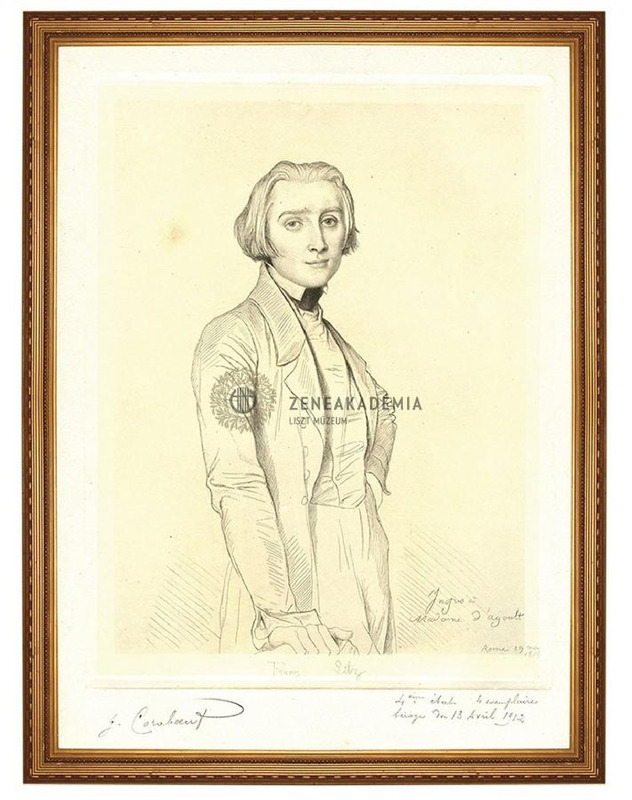Liszt fiatalkori, álló, jobbra forduló derékképe. Dominique Ingres 1839-es rajza nyomán 1912-ben készült litográfia. A kép alatt középen: "Franz Litz" [sic], a jobb alsó sarkában: "Ingres ? /Madame dAgoult / Rome / 29 mai / 19" [sic]. A képmezőn kívül, alul balra a művész autográf aláírása ceruzaírással: "J. Coraboeuf", jobboldalt: "4.?me état. 4 exemplaires / tirages du 13 Avril 1912".