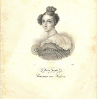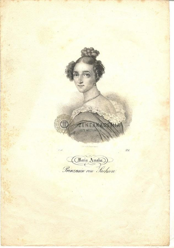 Mellkép, Maria Amelia balra fordul, szembe néz. Haja kontyban, nyakláncot visel, kivágott ruháján csipkegallér. A kép alatt: "Lith. v. Fr. Zimmermann". Alatta: "Maria Amalia / Prinzessin von Sachsen" Két oldalt két monogram: "C.M." illetve "B.U."