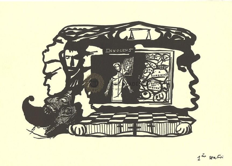 D. Vincent és G. Dégé: Liszt Via Crucisához készült grafikasorozat, a Passió állomásai, 1. stáció: Jézust halálra ítélik