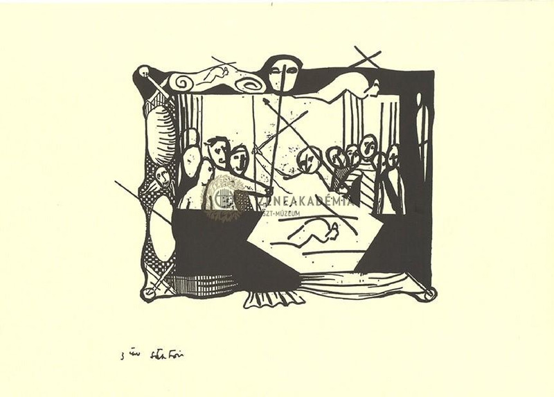 D.Vincent és G. Dégé: Liszt Via Crucisához készült grafika, a Passió állomásai. 3.stáció: Jézus először esik el a kereszttel.