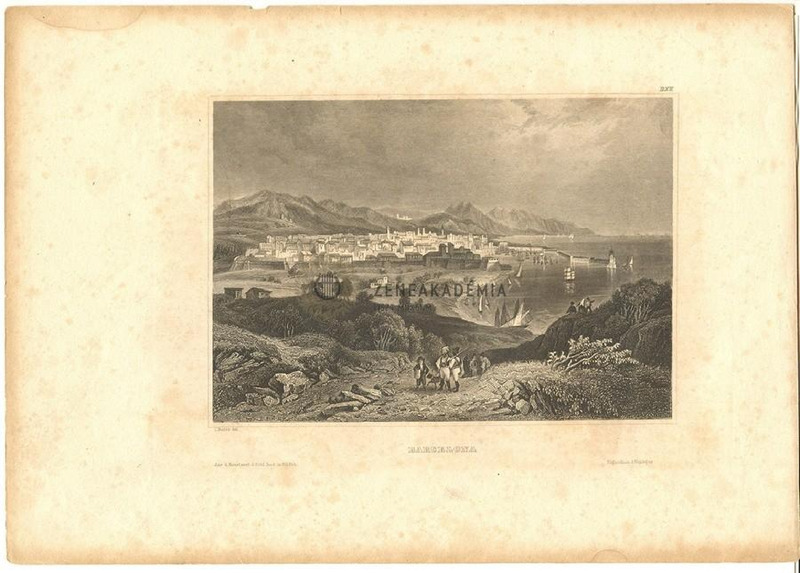 Az előtérben pásztorok kutyával, mögöttük dombok és jobbra a tenger vitorlásokkal. Balra hátul a város, a háttérben hegyek. A kép alatt balra: "C. Reiss del." Ez alatt: "Aus d. Kunstanst d. Bibl. Inst. in Hildbh." Lent jobb oldalon: "Eigenthum d. Verleger" A kép alatt középen: "BARCELONA" Jobb felső sarokban: "DXII", sorszám a Kunstanstalt Hildburgshausen kiadványainak sorozatában.