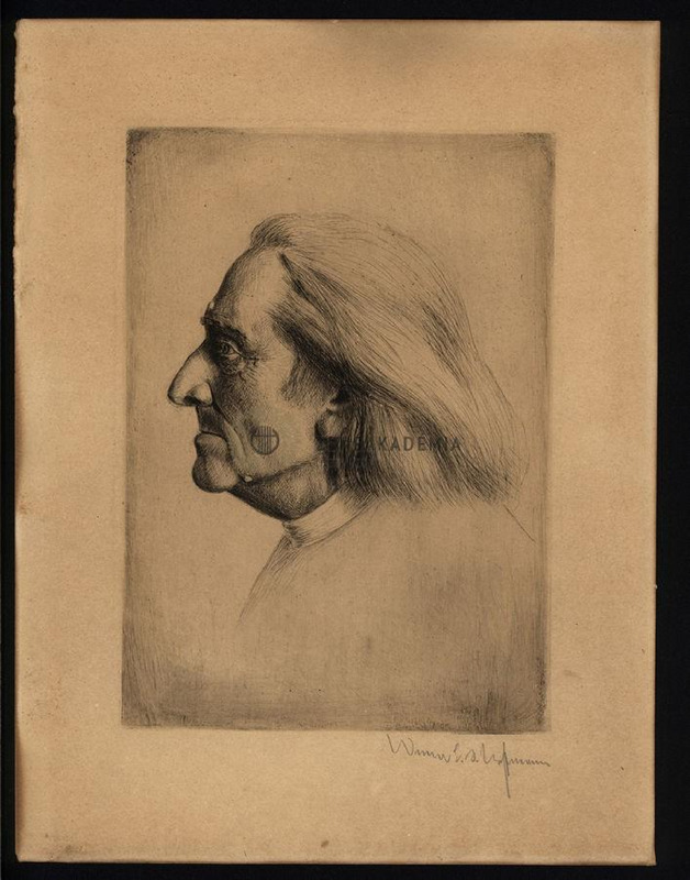 - Liszt öregkori képe. (Sopron) Baloldali mellkép. Abbéruhában van. Keretezett, a kép alatt ceruzával aláírás.