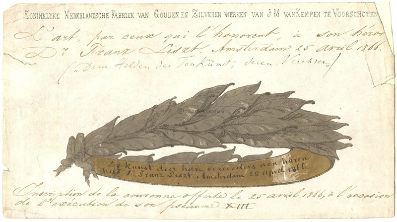 Az Amsterdami Egyházzenei Egyesület által Lisztnek adományozott ezüstkoszorú ajándékozási lapja.