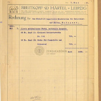 A Breitkopf és Härtel cég számlája a Liszt-összkiadás 11. és 13. kötetéről 50-50 példányban.