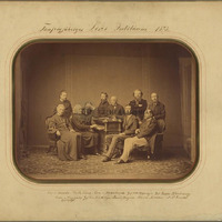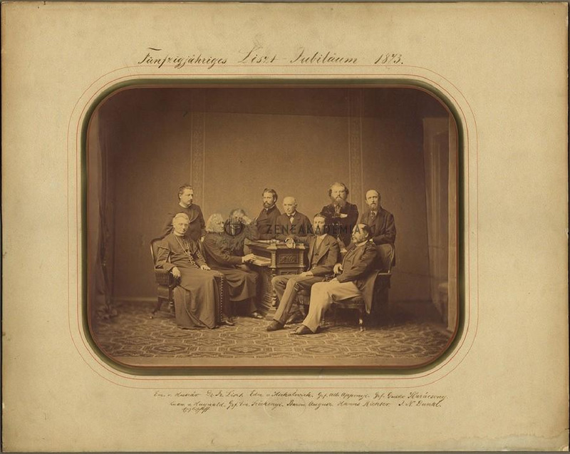 Az F 35 fénykép nagyított változata. Liszt Ferenc abbé ruhában a zongoránál ül, körülötte ülnek: Haynald Lajos, Széchényi Imre, Apponyi Albert, Karátsonyi Guidó. Állnak: Huszár Imre, Mihalovich Ödön, Augusz Antal, Richter János, Dunkl Nepomuk János. Felül tintával ráírták:"Fünfzigjähriges Liszt-jubileum 1873."