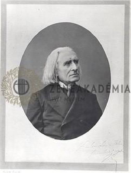 Az idős Liszt ovális alakú képe üveges keretben.A karton hátlap jobb alsó sarkán Liszt saját kezű dedikációja olvasható:"Fräulein Louise Jahn, freundlichst ergeben F. L."