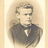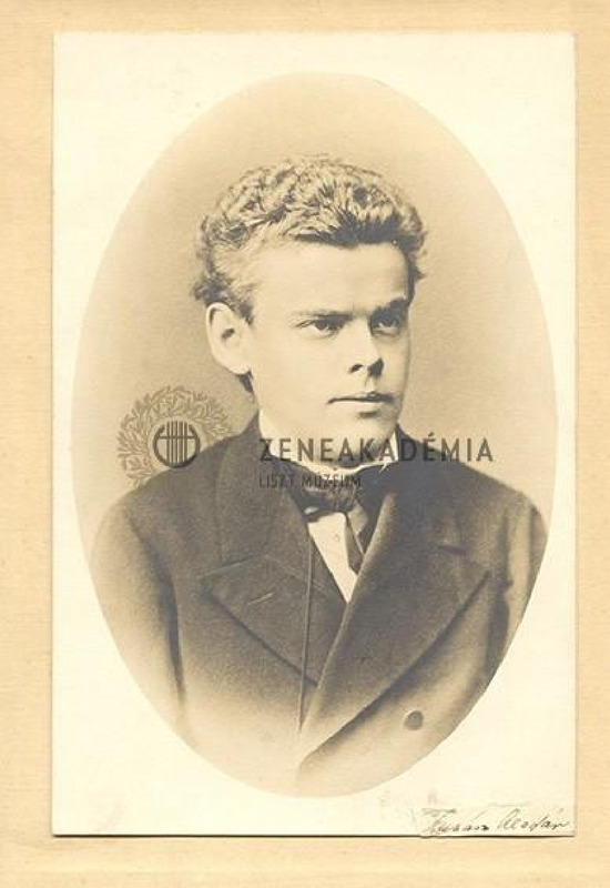 - Ovális alakú fénykép hátlapra alkalmazva. A fiatal Juhász kabátot és csokornyakkendőt visel.