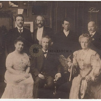 Jelzetlen fénykép üveges keretben. Liszt tanítványai, az 1911-es ünnepségek szereplői. Balról jobbra ülnek: Vera Timanova, Emil Sauer, Göllerichné Voigt Gizella. Állnak: Thomán István, Bernhard Stavenhagen, August Göllerich, Szendy Árpád, Martin Krause.
