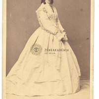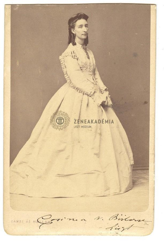 Cosima von Bülow-Liszt fényképe álló, levél akalkú fémkeretben. Cosima hosszú fehér ruhában kissé jobbra fordulva áll. A fénykép hátán a fényképész adatai:"Canzi és Heller fényképészeti műterme Pesten, Kristóf-tér 4 sz." A fénykép alján Cosima sajátkezű aláírása: "Cosima v. Bülow-Liszt".