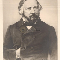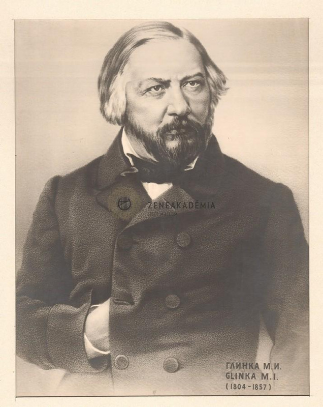 A zeneszerző szemből látható, kicsit jobbra fordítja fejét, jobb kezét gombos kabátja alá rejti.Fekete csokrnyakkendőt visel. A fénykép jobb alsó sarkában cirill és latin betűs felirat:"GLINKA M. I. /(1804-1857)"