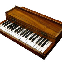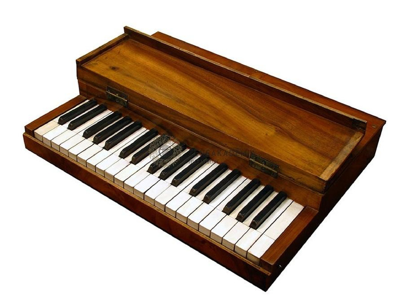 Téglalap alakú fa dobozban elhelyezett három oktávos billyentyűsor.