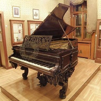 Hangverseny-zongora, angol mechanikás, 7 1/3 oktáv terjedelemmel (AAA-c5), öntöttvas kerettel, 3 pedállal. Fényezett rózsafa szekrény faragott díszítéssel. A klaviatúra fedelének belsején felirat: "Chickering. BOSTON."