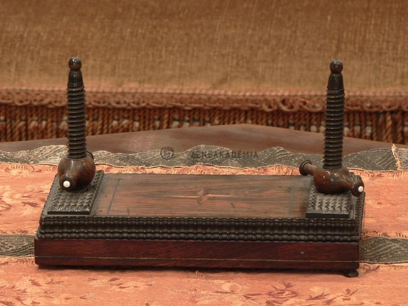 Rózsafa borítású intarziával és faragással díszített kártyaprés.