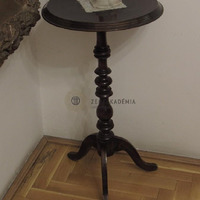 Bükk vagy szilfa állvány, esztergályozott rúdon kerek, festett lap. A lapon festett virágcsokor.
