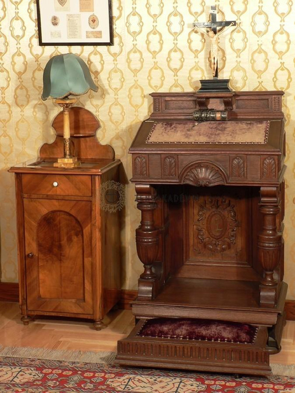 - Éjjeliszekrény, fenyő alapon diófa borítással, "Kehlheim" borítólappal.