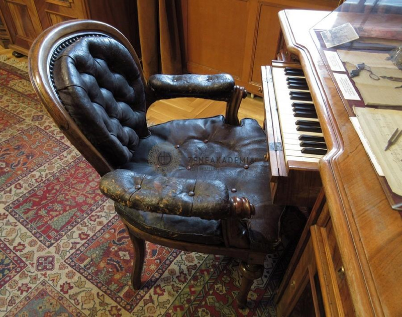 - Bőrrel kárpitozott karosszék. Liszt a Sugár úti otthonában használta az íróasztalnál.