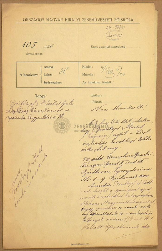 Másolat a Zeneakadémia könyvtárosának. A Zeneakadémia igazgatójának, Hubay Jenőnek a levele a vallás-és közoktatási miniszternek a Breitkopf és Härtel-féle Liszt-összkiadással kapcsolatban, a 2-3. kötet (Beethoven szimfónia-átdolgozások, Nr.1-9.) megérkezése 50 példányban.