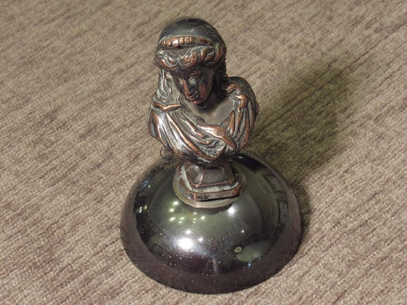 Félgömb harangtest, klasszicizáló női mellszobrot formázó fogantyúval.
