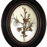 Virágcsokor Liszt hajából. Drót vázra tekert őszes hajszálak; a virágok porzója fémfényű üveggyöngyökből, a virágszálak hajból sodort szalagcsokorral átkötve. Fehér selyemre erősítve; fekete, fém gyöngypálca-sorral díszített keretben domború üveglap alatt.