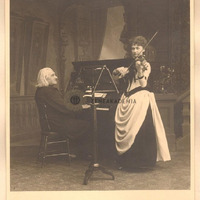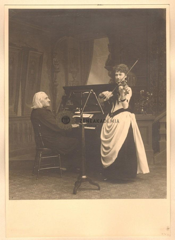 Az idős Liszt pianinónál ül, mellette Arma Senkrah kottatartó mögött, állva hegedül. Utólagos, szerző által hitelesített nagyítás.