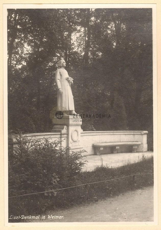Széles talapzaton Liszt abbéruhában áll, bal kezét behajlítja. Alul felirat: "Liszt-Denkmal in Weimar." A fénykép hátoldalán szerzői pecsét (Louis Held). Utólagos, szerző által hitelesített előhívás.