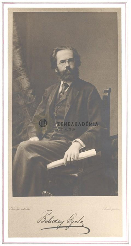 A zeneszerző karosszékben ül, kissé balra fordul, szembe néz. Baljában papírtekercs. A fénykép alatt cégjelzés: "Koller utódai Budapesten." Középen autográf aláirás hasonmása. Üveges keretben.