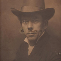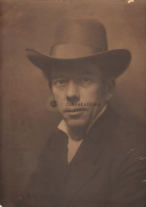 A viszonylag fiatal zongoraművész fején kalap. Kissé balra fordul, szembe néz.