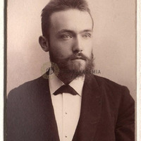 A fiatalkorú Ifj. Eduard Liszt (Dr. Eduard Ritter von Liszt fia, Liszt Ferenc unokatestvére) sötét zakót és csokornyakkendőt visel.