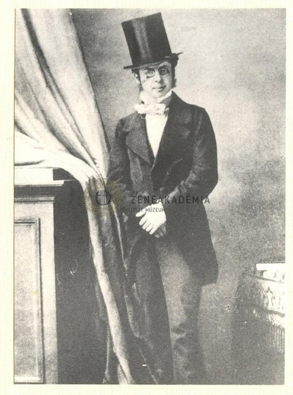Lobkowitz herceg vastag függöny mellett áll kabátban és cilinderben, kezét maga előtt összefogja.