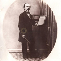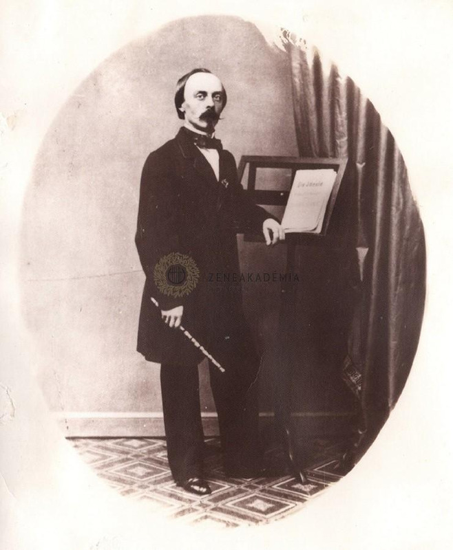 Ovális formátumú fénykép üveges keretben. A fiatal Bülow szmokingot visel, kottatartó előtt áll, kezében karmesteri pálca.