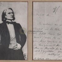 A középkorú Liszt szmokingot és kockás mellényt visel csokornyakkendővel, faragott széknek támaszkodik. A levelet Liszt 1860. szept. 18-án valószínűleg a weimari bankárnak, Calmann-nak írta Humboldt professzor hagyatékával kapcsolatban.