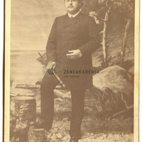 Reisenauer műteremben sziklás-fás háttér előtt áll kalapban, kabátban. Kezében bot, lábát fatönkön nyugtatja. A fénykép alján nyomtatott felirat: "Alfred Reisenauer". A fénykép hátán az ajándékozó feljegyzése : "Liszt kedvence - sokat koncertezett Suomiban"