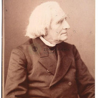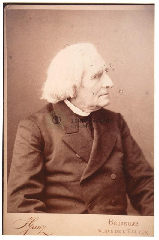Az idős művész jobb profilban látható, kabátot és papi gallért visel. Julien Ganz fényképének színes másolata.